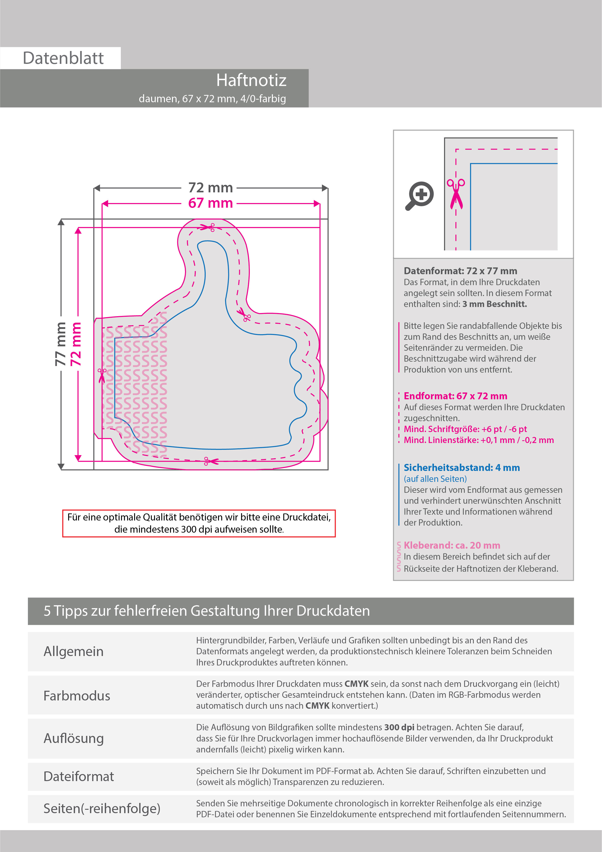 Haftnotizen als Daumen 67 x 72 mm, 4/0-farbig bedruckt
