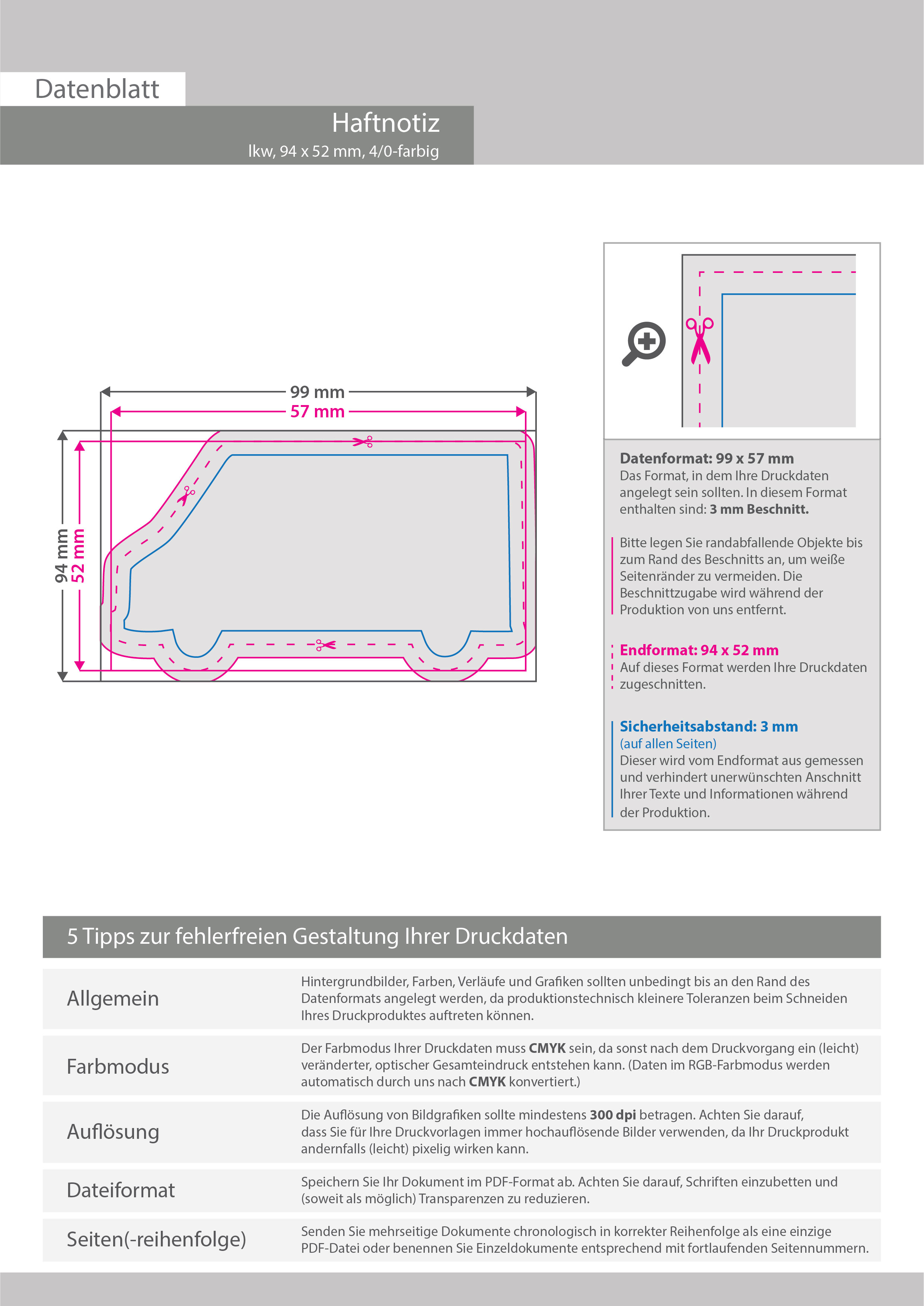 Haftnotizen als Lkw 94 x 52 mm, 4/0-farbig bedruckt