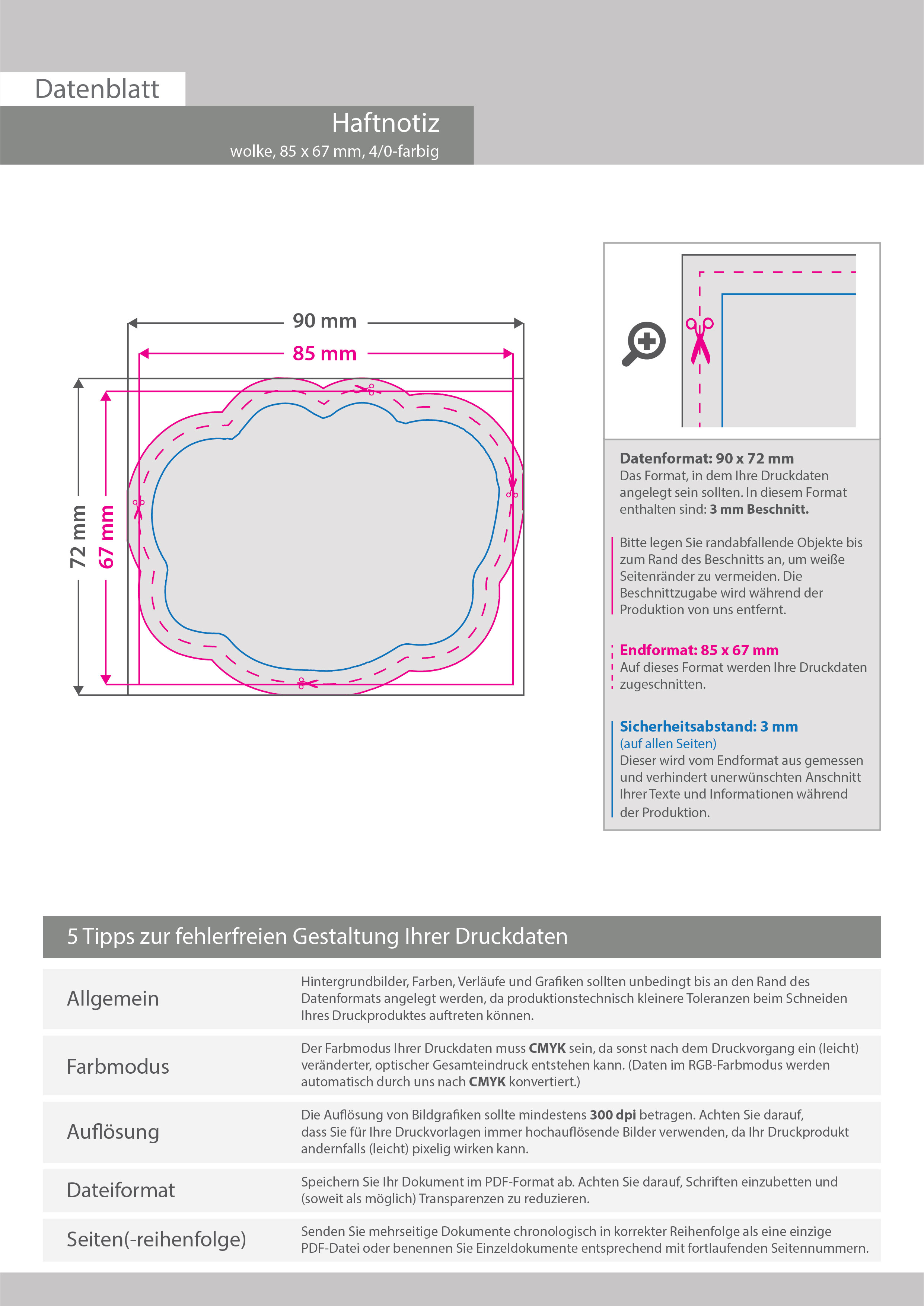 Haftnotizen als Wolke 85 x 67 mm, 4/0-farbig bedruckt