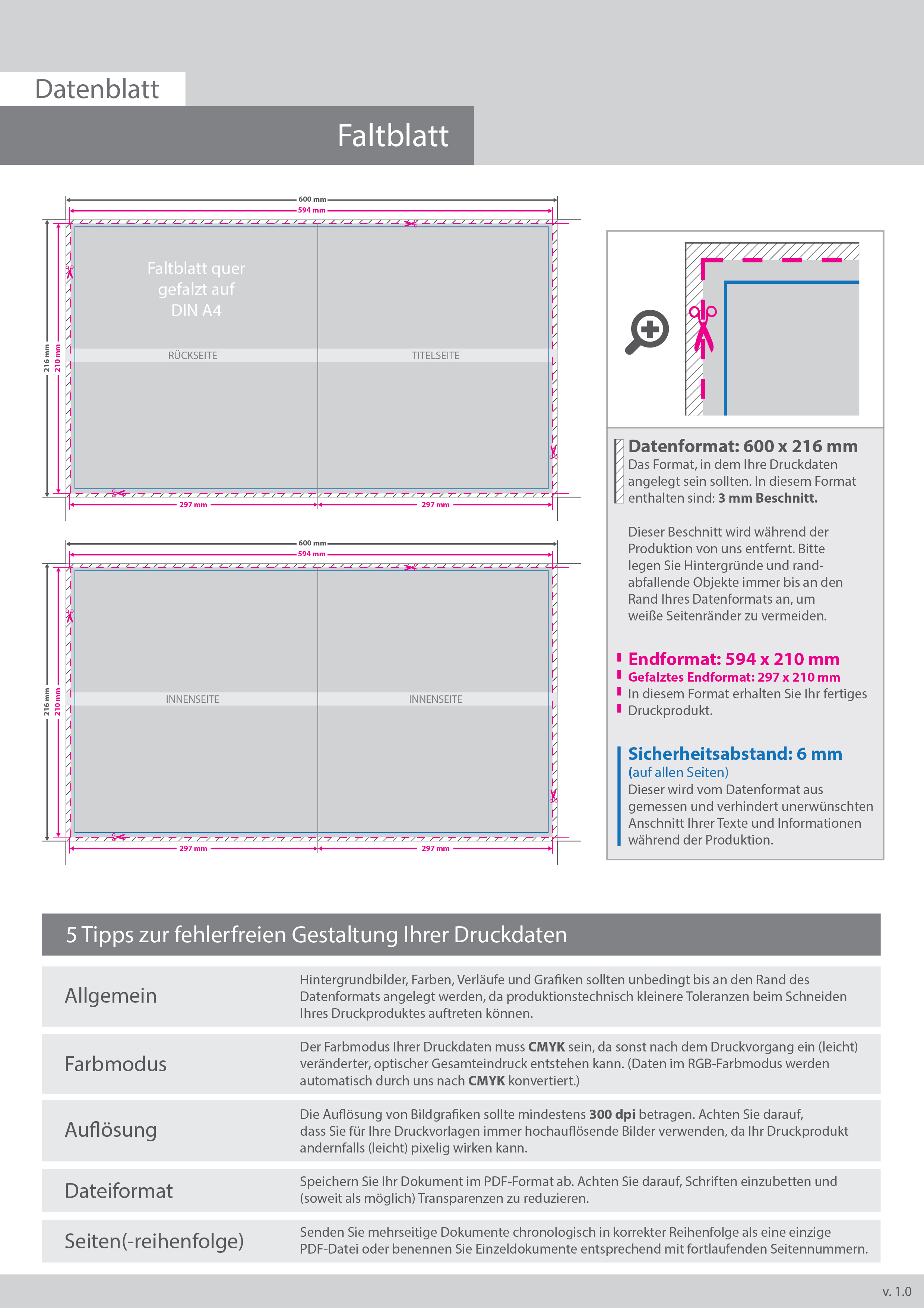 Faltblatt, gefalzt auf DIN A4 quer, 4-seiter