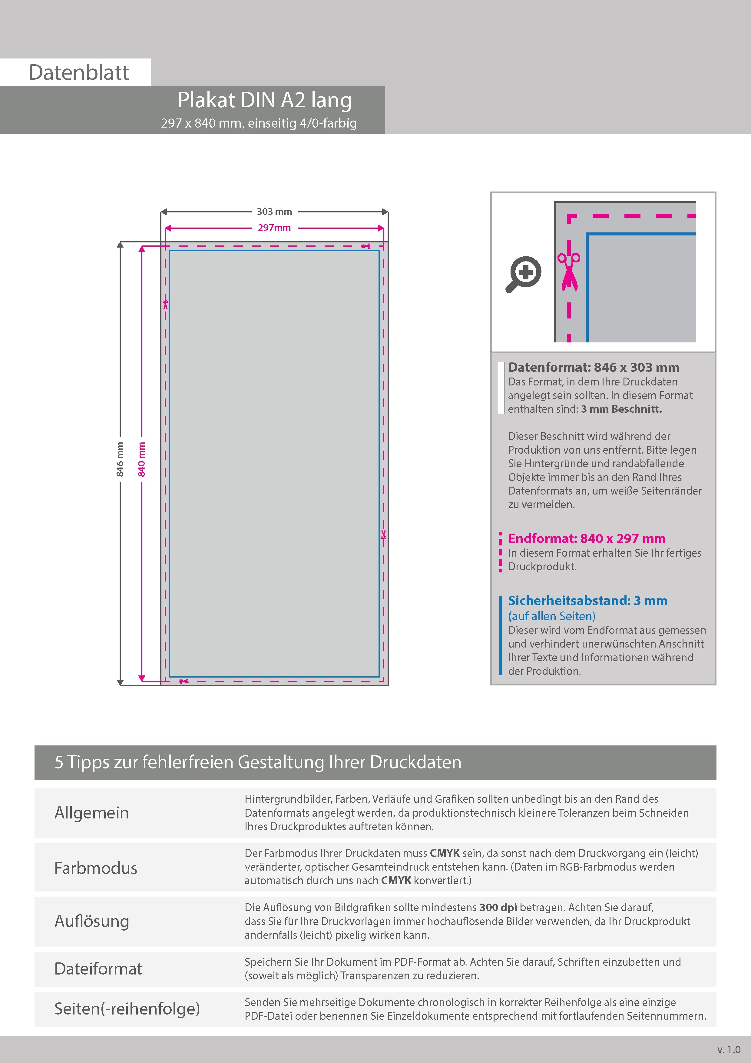 Plakat DIN A2 lang (297 x 840 mm) einseitig 4/0-farbig bedruckt (Topseller)
