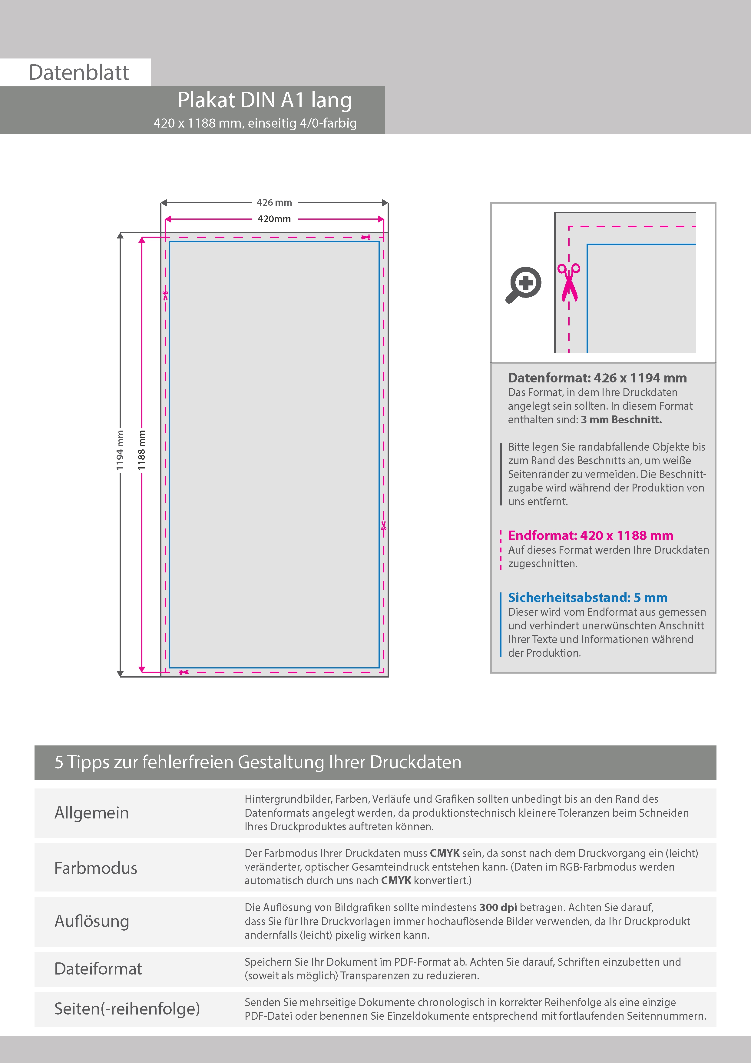 Plakat DIN A1 lang (420 x 1188 mm) einseitig 4/0-farbig bedruckt (Topseller)