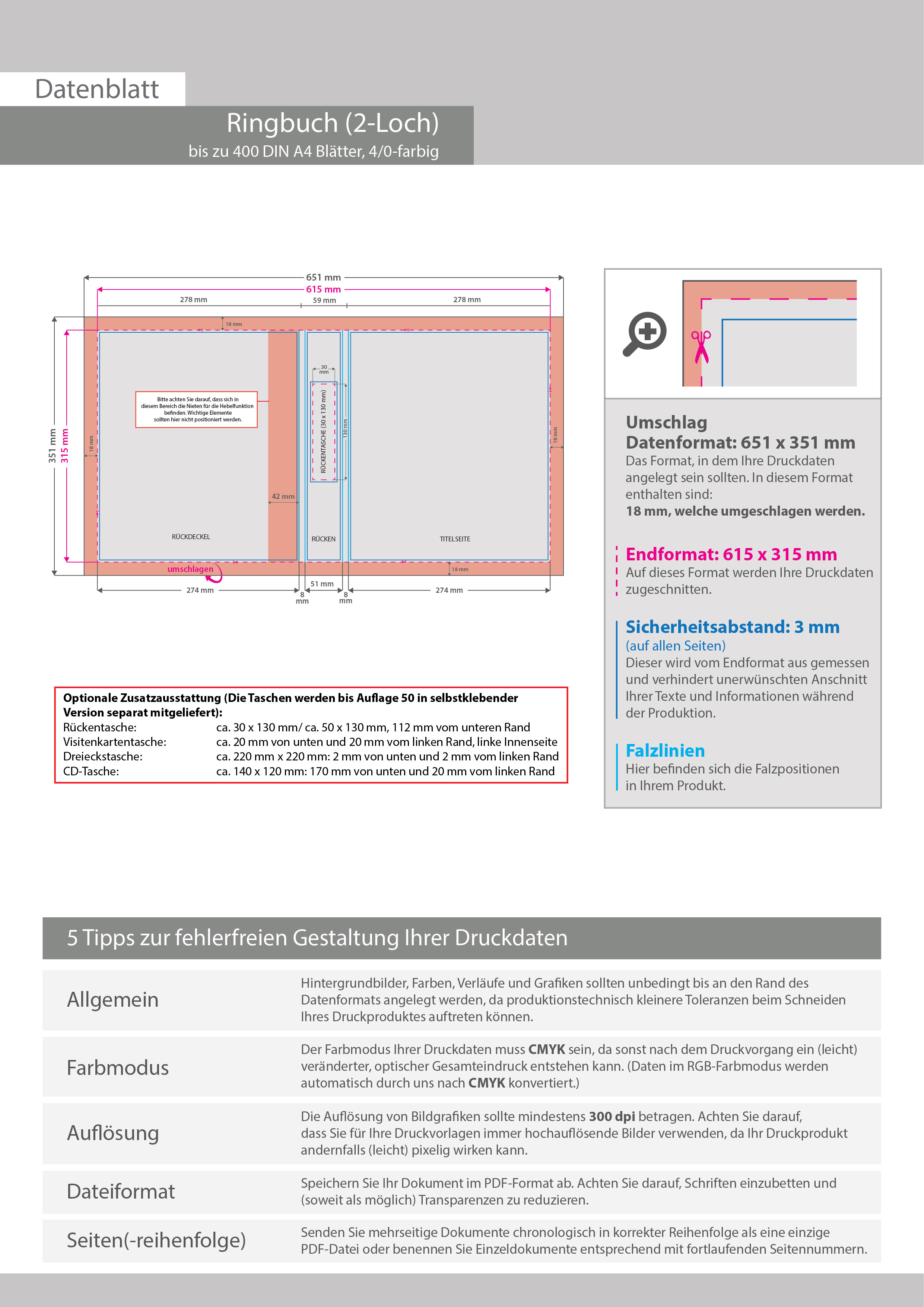 Ringbuch (2-Loch) bis zu 400 DIN A4 Blätter