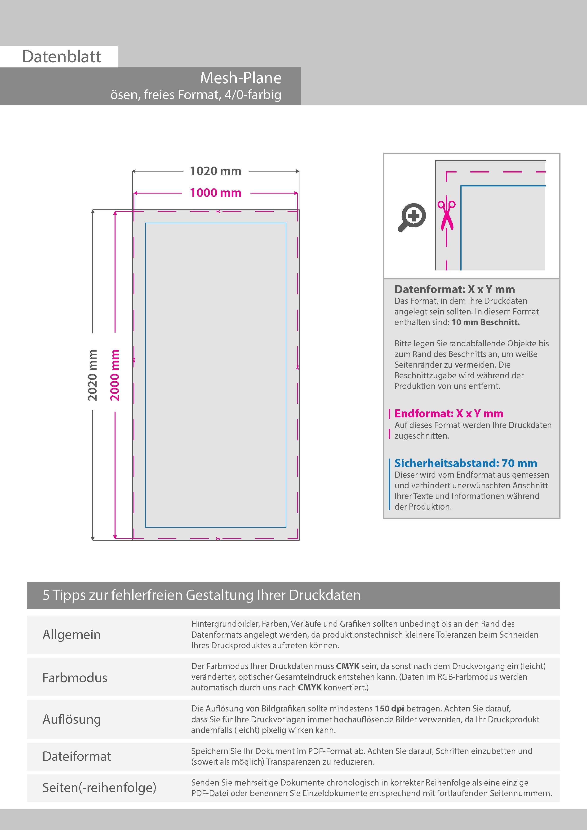 Mesh-Planen (PVC-frei), 4/0-farbig bedruckt, Ösen im Abstand von 50 cm oben und unten