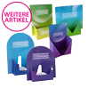 Individuell bedruckte Thekendisplays ziehen die Blicke auf sich und sind ideal für Flyer, Visitenkarten und weitere Werbemittel geeignet. Sie erhalten sie in verschiedenen Größen und in Modellen mit rechteckigem Fach oder Fach in V-Form. Die Displays bestehen aus robustem Chromosulfatkarton mit einer Grammatur von 360 g/m² oder 450 g/m². Ihr Wunschdesign drucken wir 4/4-farbig mittels Digitaldruck oder Offsetdruck auf das Display – stets in Top-Qualität und zu günstigen Preisen.